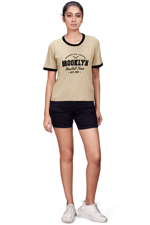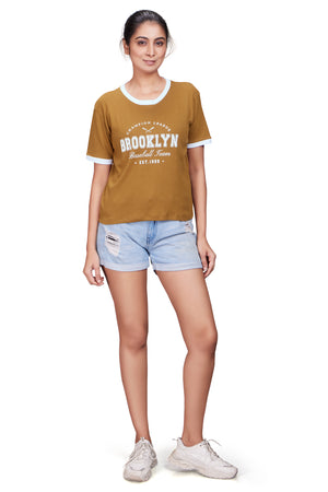 Flaunt your figure in this breathable cotton crop top. The flattering cropped length, vibrant statement print, and structured ribbed neckline make it a must-have for a chic, contemporary look.